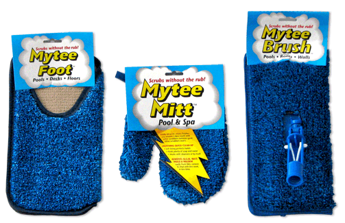 Use Mytee Mitt™ with cleansers or by itself to remove algae, rust, scum and dirt easily from tiles, fiberglass, cement and vinyl with less work, in less time. Patented non-scratch cleaning bristles do the work. Thousands and thousands of these bristles act as mini-scrapers to undercut the dirt and easily lift it from the surface being cleaned. The Mitt is designed to fit your hand for fatigue free cleaning. Both the Mitt and Foot feature a soft, anti-microbial lining. In addition to Pool and Spa cleaning applications, Mytee products work great for cleaning boats, RV's, Travel Trailers, showers and tubs, patio furniture, pots and pans, counter tops and many other surfaces.
